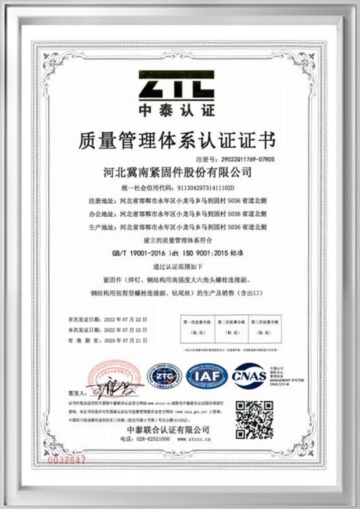Specializing exclusively in steel structure fasteners, ensuring both quality and supply.